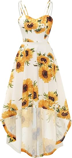 Women's Hi-Low Spaghetti Strap Dresses, Fit Flare Cocktail Bridesmaid Wedding Guest Teen Dress