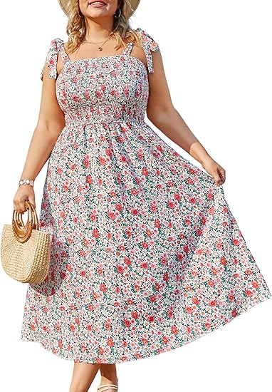 Women's Plus Size Floral Adjustable Strap High Waist A-Line Sleeveless Summer Casual Dress